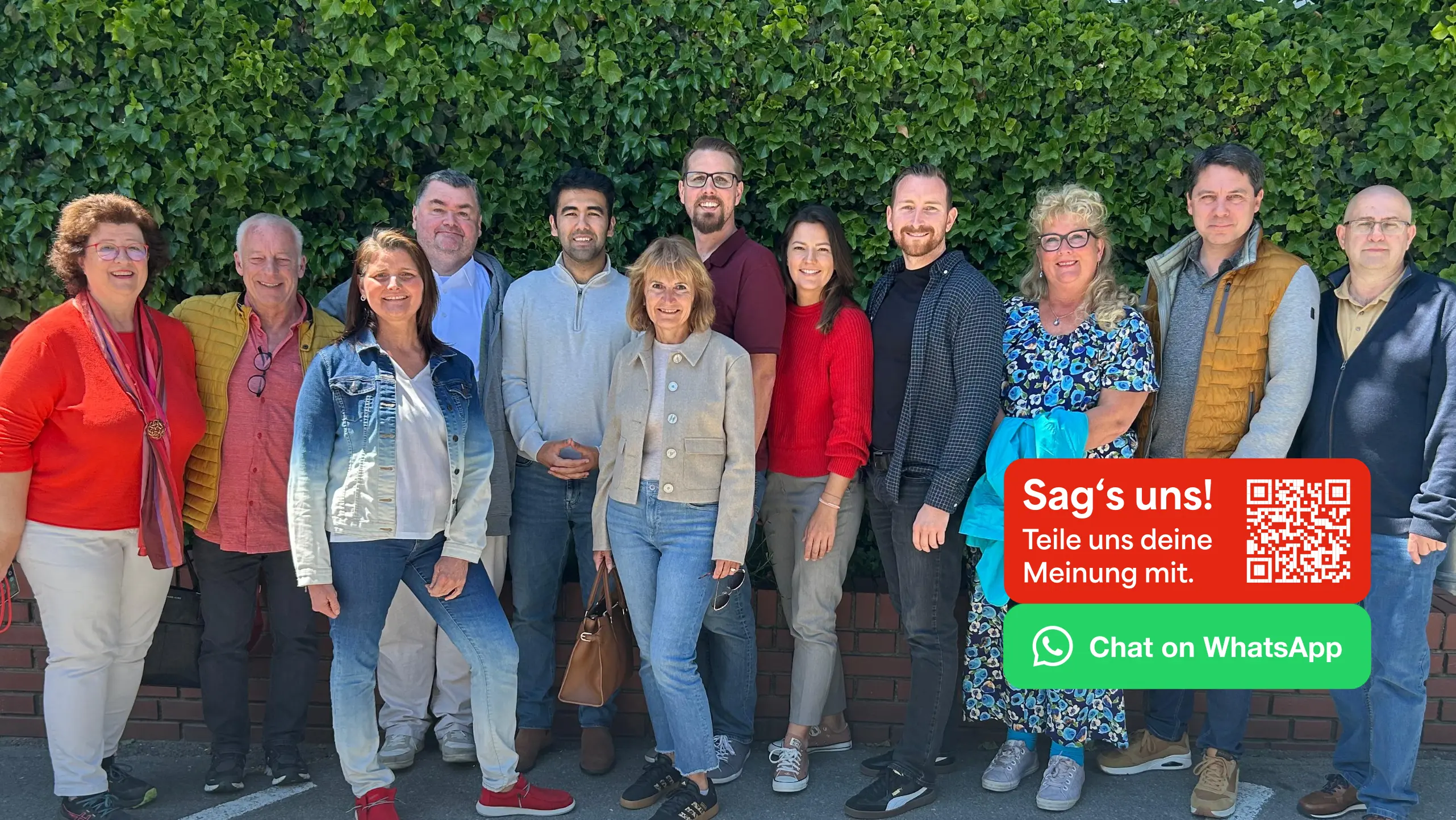 Einfach auf den grünen „Chat on WhatsApp“-Button klicken – und ihr seid direkt bei uns.Schnell, unkompliziert und persönlich.